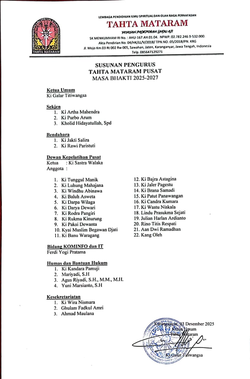 Reshuffle Pengurus Pusat Tahta Mataram Masa Bakti 2025–2027